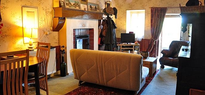 Im Erdgeschoss befindet sich ein Wohn- / Esszimmer, Küche, Bad und WC. Im ersten Stock befinden sich drei Schlafzimmer und im zweiten Stock ein großes, umgebautes Dachzimmer, das als Aufenthaltsraum oder zusätzliches Schlafzimmer dienen kann. Das Haus profitiert von europäischem Satellitenfernsehen mit zwei Satellitenboxen
